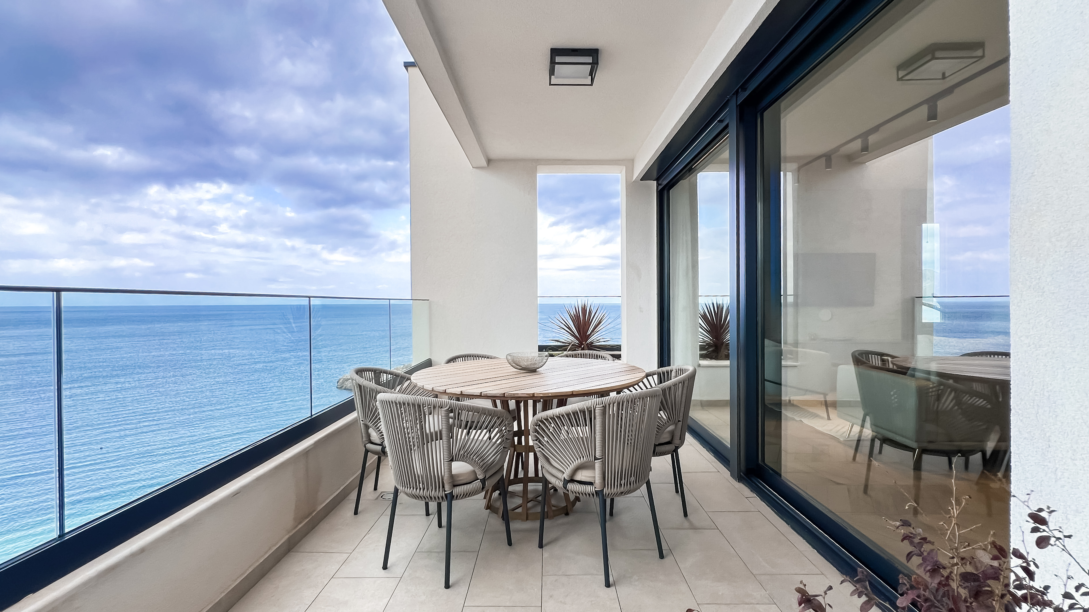 The only suite that offers views both ahead and above. The Penthouse occupies the entire top floor of the hotel. It offers a panoramic view of the horizon. The interior space is designed as a private oasis: living area, two bedrooms with private bathrooms, kitchen with dining area, and an unforgettable terrace. This is not just the highest suite in the hotel. This is a statement.